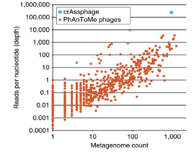 حدود نیمی از مردم دنیا ویروس تازه کشف شدهای به نام CrAssphage را در دستگاه گوارش خود دارند. این ویروس که در واقع نوعی فاژ میباشد توسط پروفسور Robert Edwards و همکاران از دانشگاه San Diego State شناسایی گردید. پروفسور Edwards و همکاران این ویروس را به صورت کاملاً اتفاقی کشف کردند و به دلیل این که این ویروس پس از آنالیز DNA با نرمافزار Cross-Assembly (CrAss) شناسایی شد به اسم CrAssphage نامگذاری گردید. این ویروس باکتریال حدود 97000 جفت باز دارد و محققین برای این که مطمئن شوند توالی مشاهده شده مرتبط با یک ویروس جدید است لیست جامعی از ویروسهای شناخته شده را بررسی نمودند و پس از مطالعات متاژنوم مشخص گردید که جای CrAssphage در این بین خالیست! برای این که ثابت شود CrAssphage کشف شده آنها واقعاً در طبیعت وجود دارد یا نه، محققین از تکنیک تکثیر DAN استفاده نمودند. این فاژ حاوی ژنوم DNA دو رشتهای حلقوی بوده و ژنوم کامل آن توالییابی شده است. نتایج این پژوهش در سال 2014 در مجله Nature منتشر گردید.