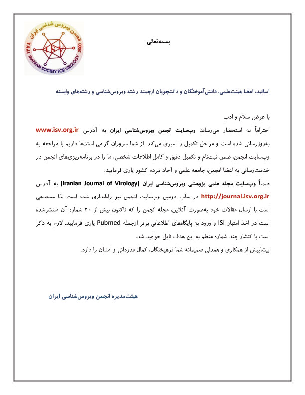 اطلاعيه دعوت به ثبت نام در سايت انجمن ويروس شناسي